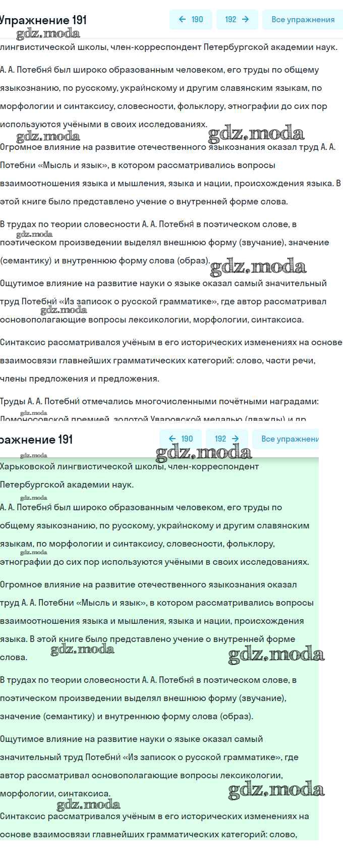 ОТВЕТ на задание № 191 Учебник по Русскому языку 9 класс Разумовская Вертикаль