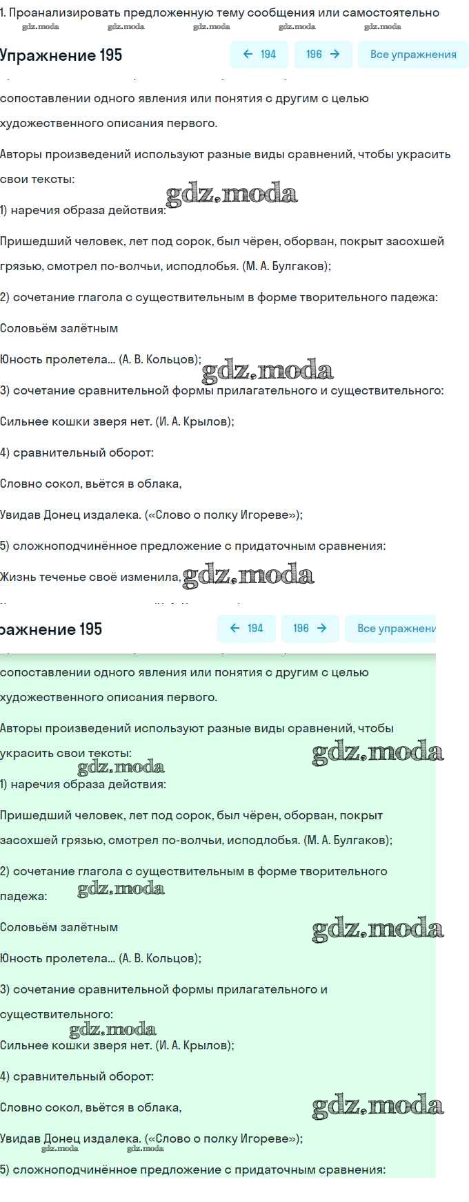 ОТВЕТ на задание № 195 Учебник по Русскому языку 9 класс Разумовская Вертикаль