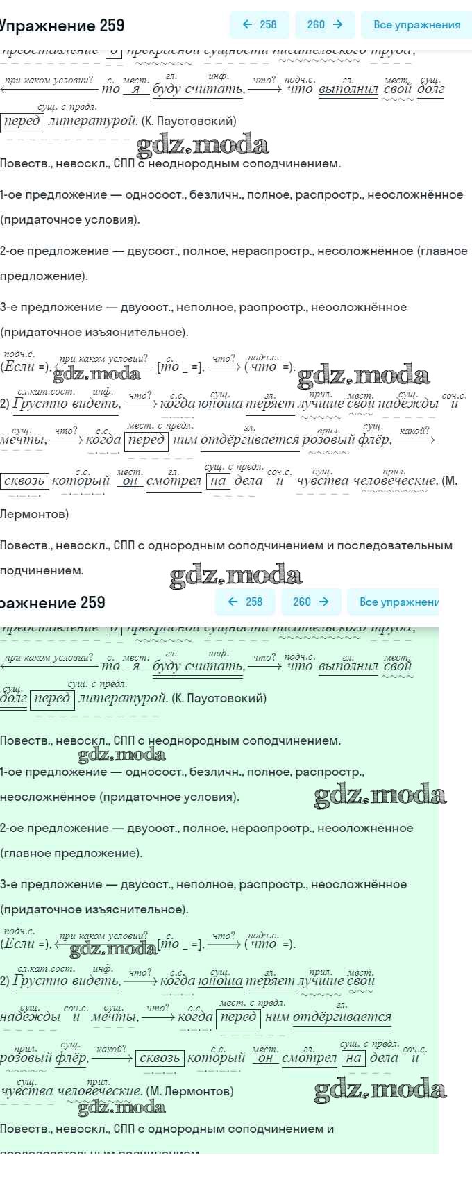 ОТВЕТ на задание № 259 Учебник по Русскому языку 9 класс Разумовская Вертикаль