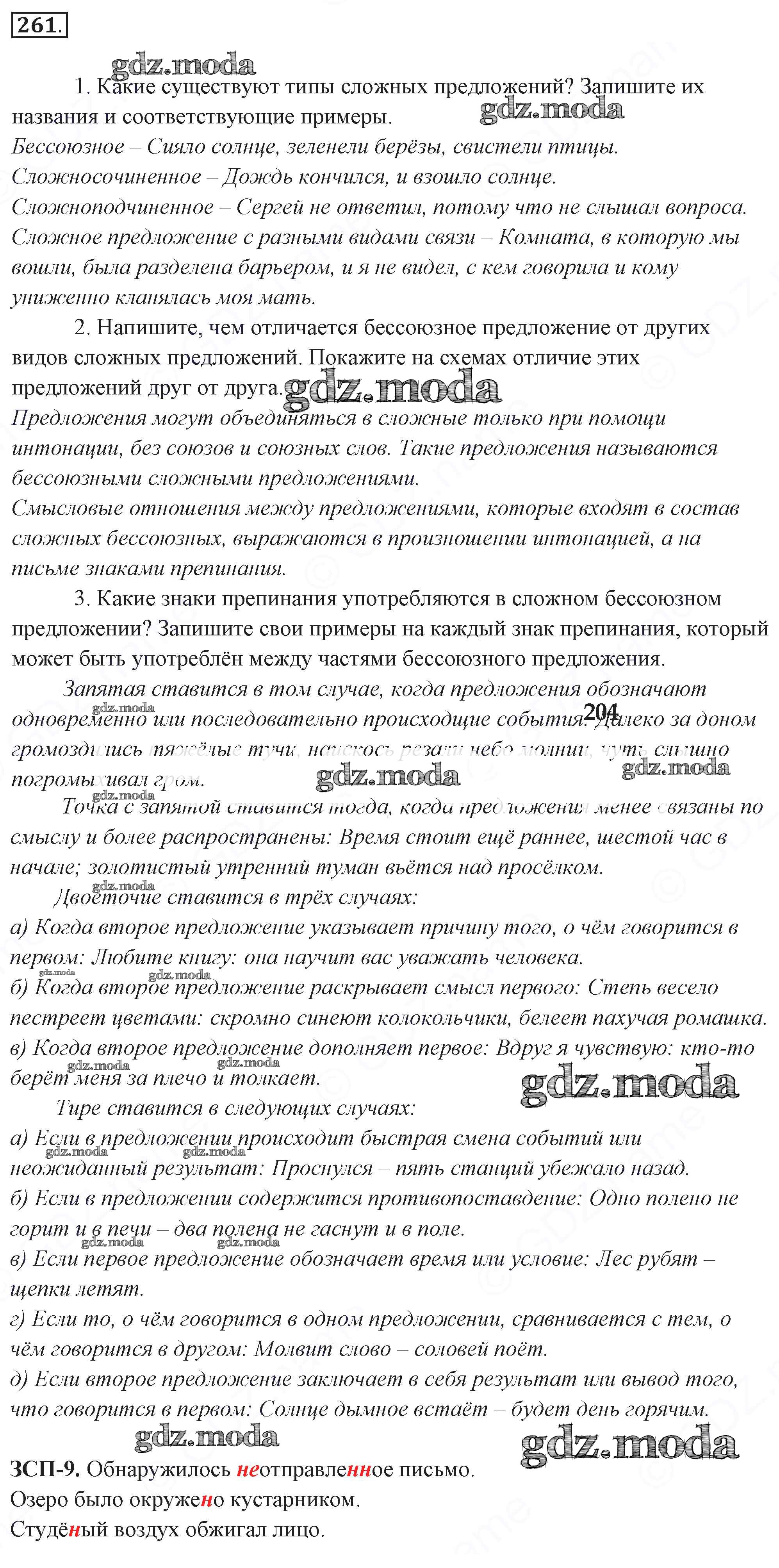 ОТВЕТ на задание № 261 Учебник по Русскому языку 9 класс Разумовская Вертикаль