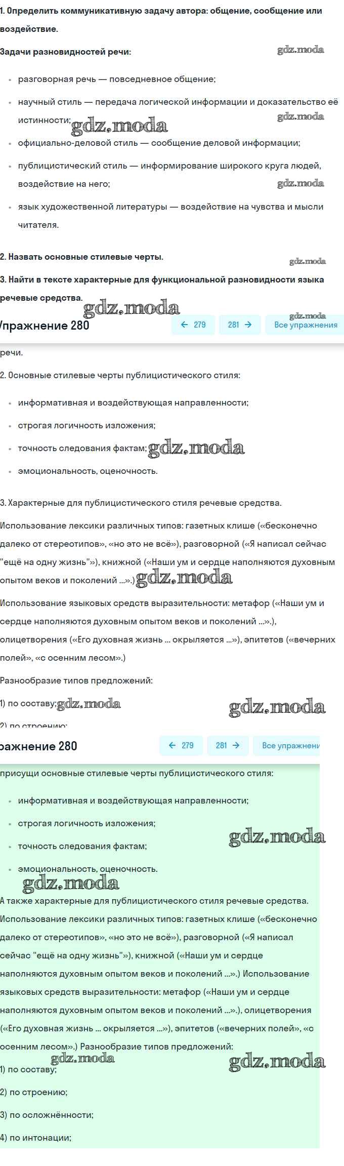 ОТВЕТ на задание № 280 Учебник по Русскому языку 9 класс Разумовская Вертикаль