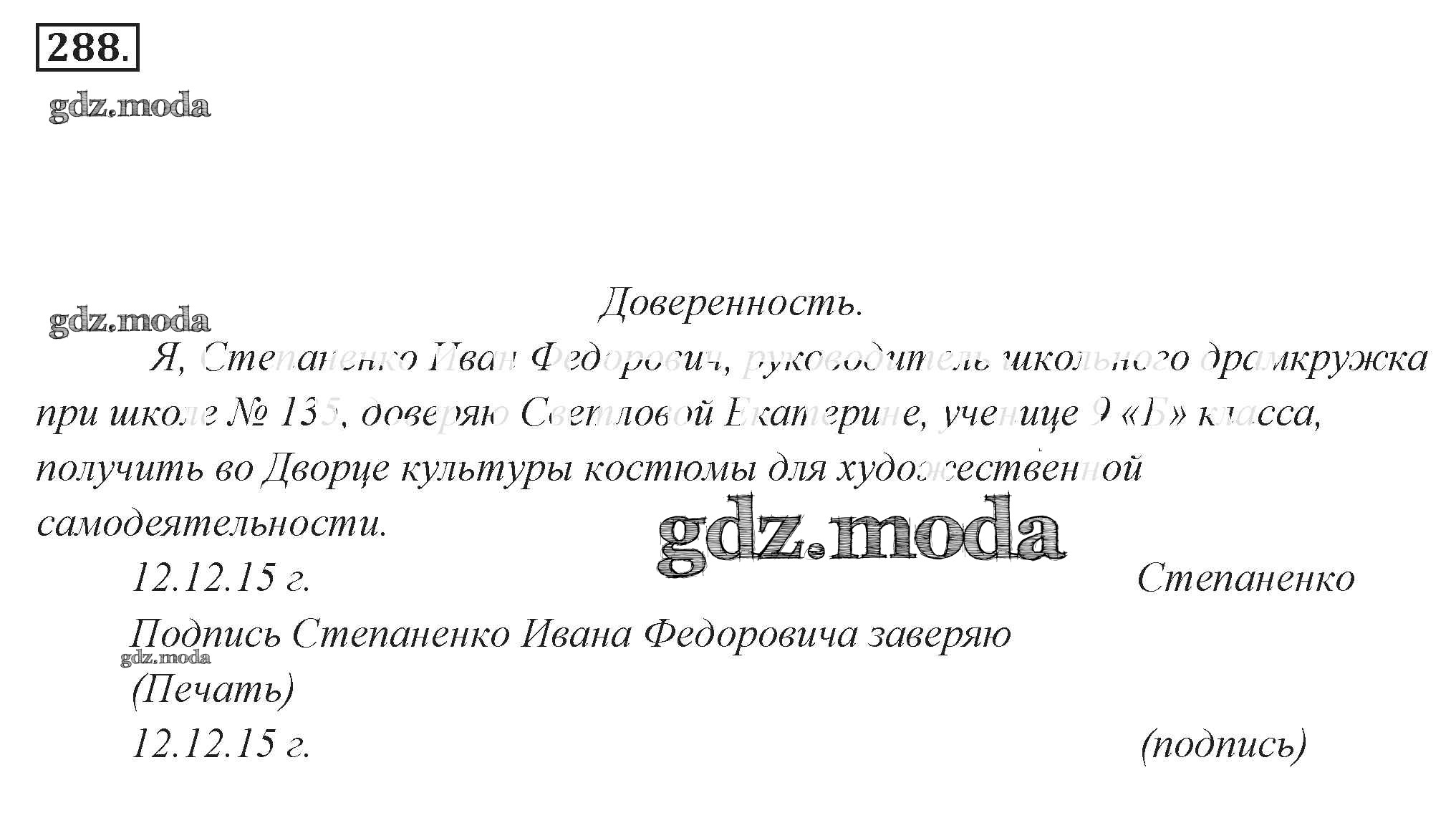 ОТВЕТ на задание № 288 Учебник по Русскому языку 9 класс Разумовская Вертикаль