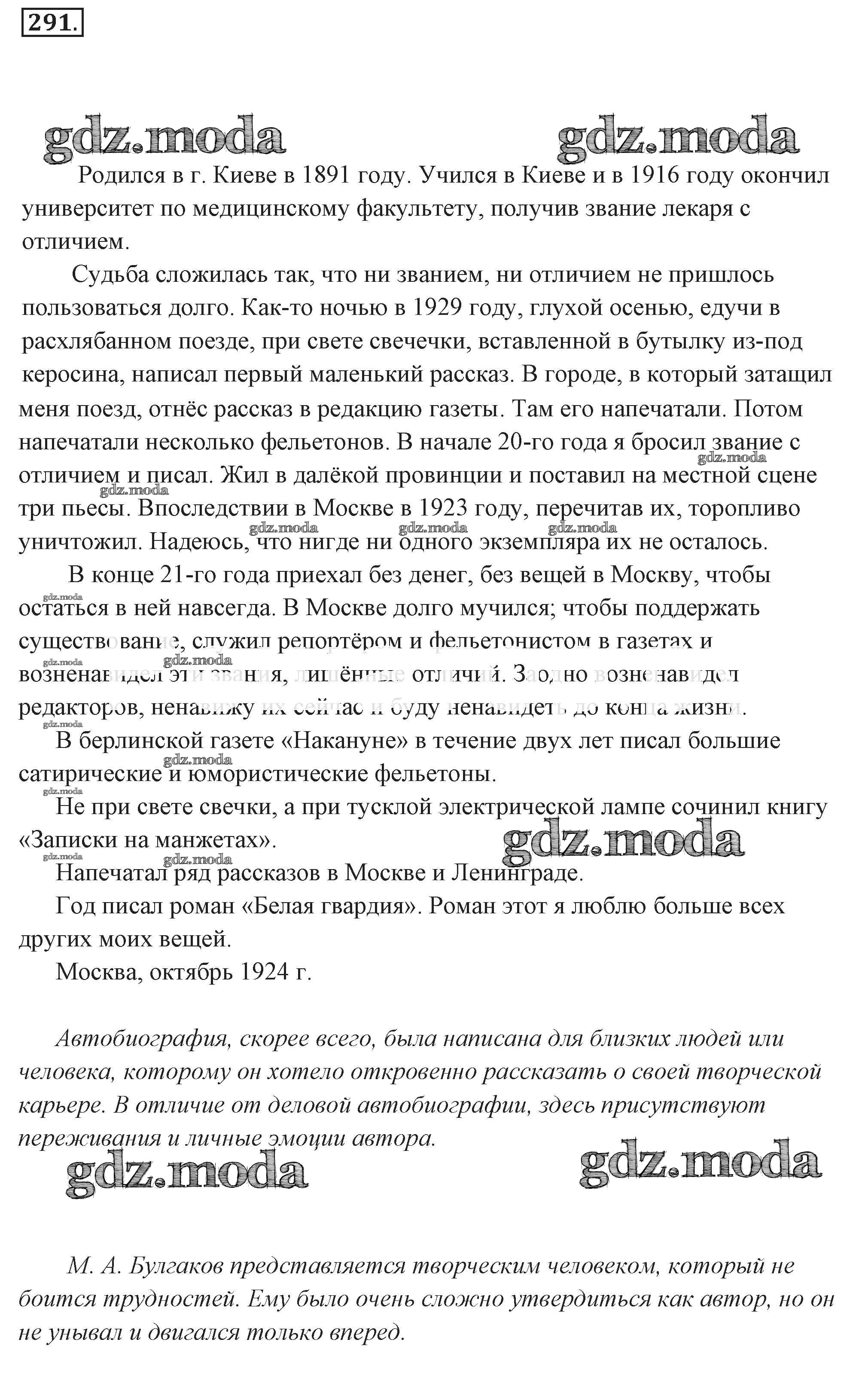 ОТВЕТ на задание № 291 Учебник по Русскому языку 9 класс Разумовская Вертикаль