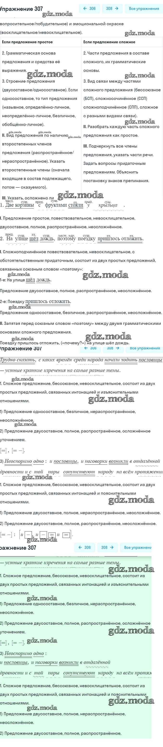 ОТВЕТ на задание № 307 Учебник по Русскому языку 9 класс Разумовская Вертикаль