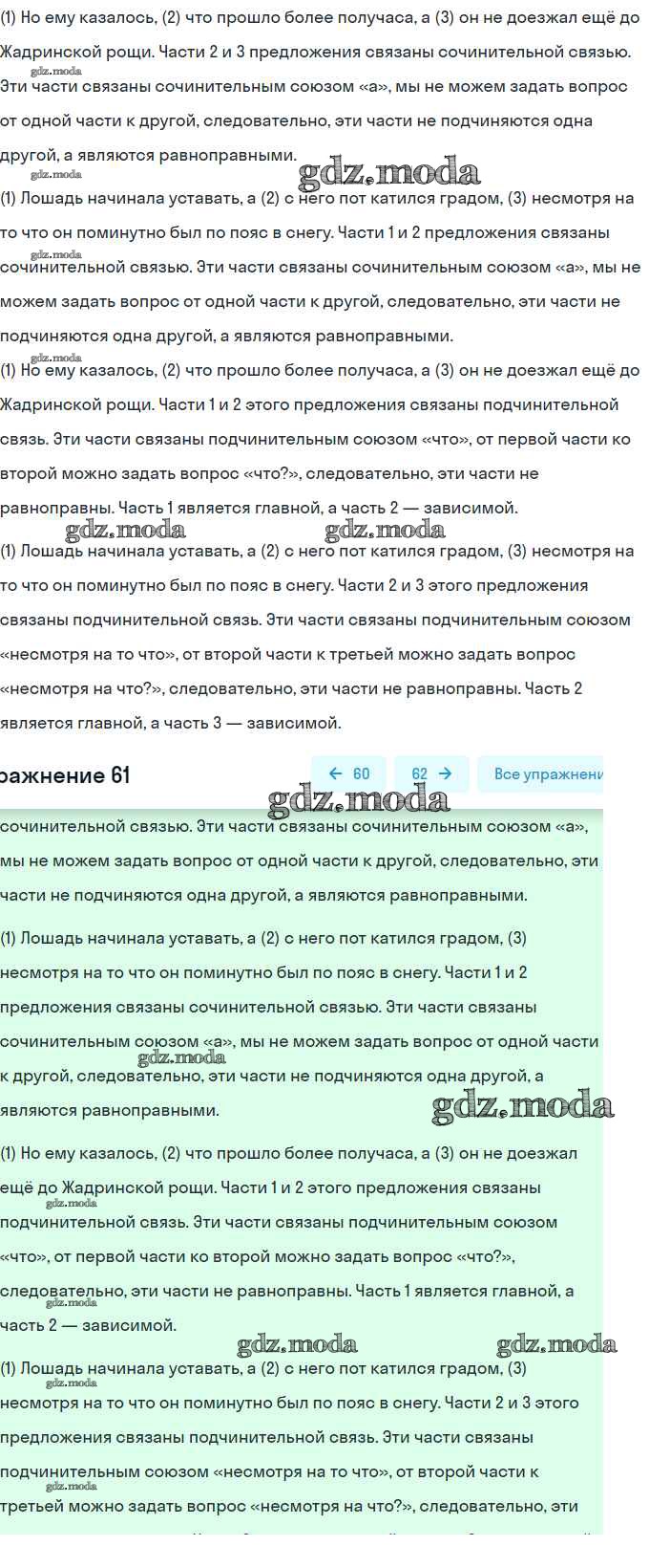 ОТВЕТ на задание № 61 Учебник по Русскому языку 9 класс Разумовская Вертикаль