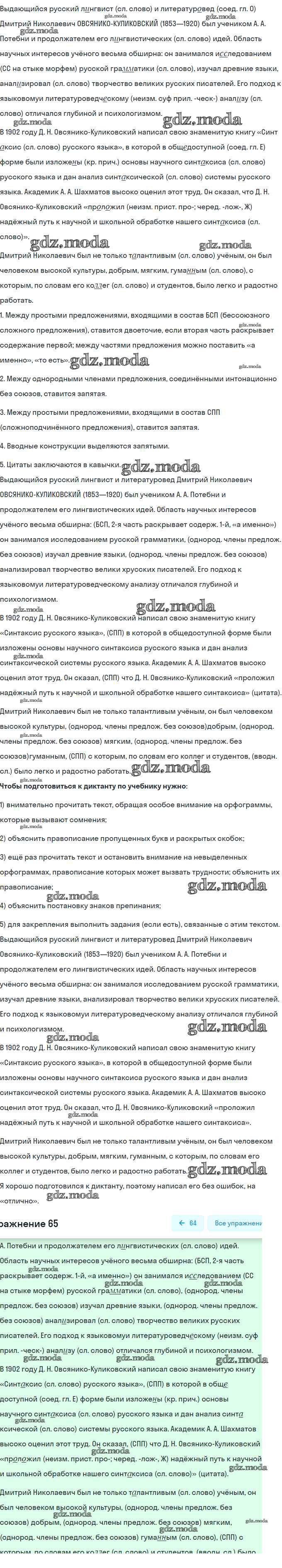 ОТВЕТ на задание № 65 Учебник по Русскому языку 9 класс Разумовская Вертикаль