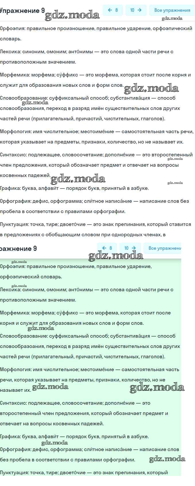 ОТВЕТ на задание № 9 Учебник по Русскому языку 9 класс Разумовская Вертикаль