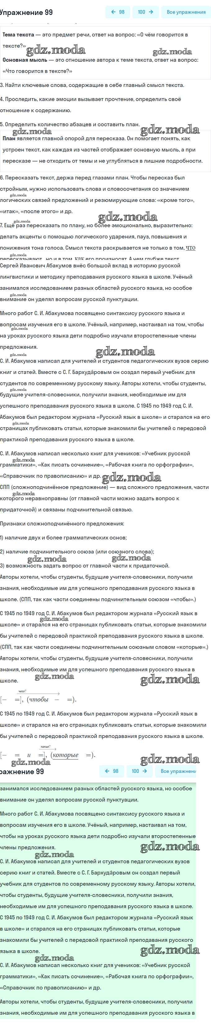 ОТВЕТ на задание № 99 Учебник по Русскому языку 9 класс Разумовская Вертикаль