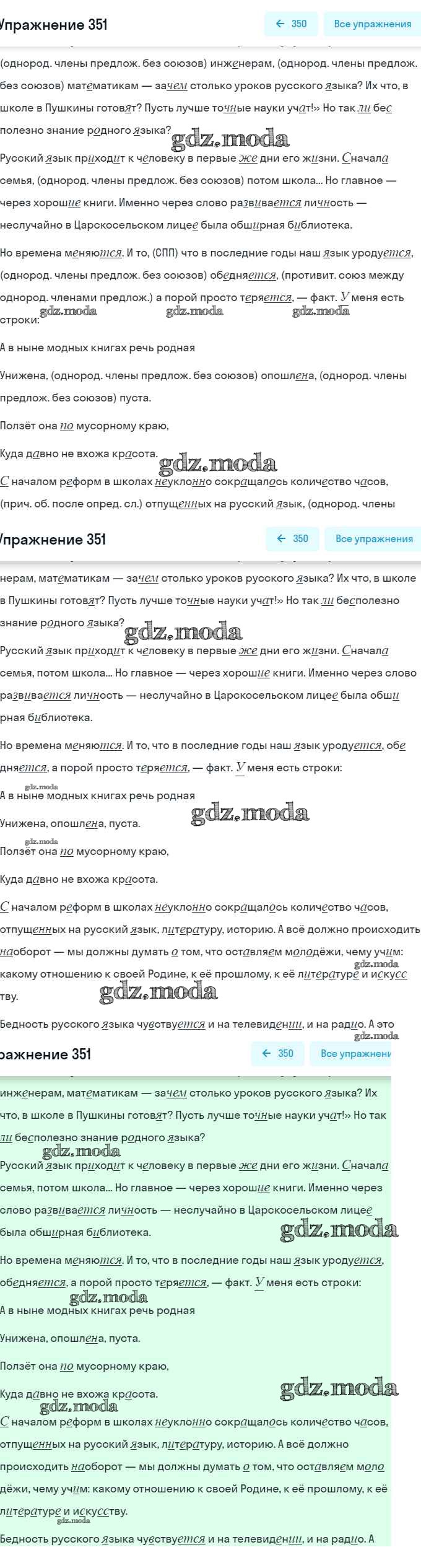 ОТВЕТ на задание № 351 Учебник по Русскому языку 9 класс Разумовская Вертикаль