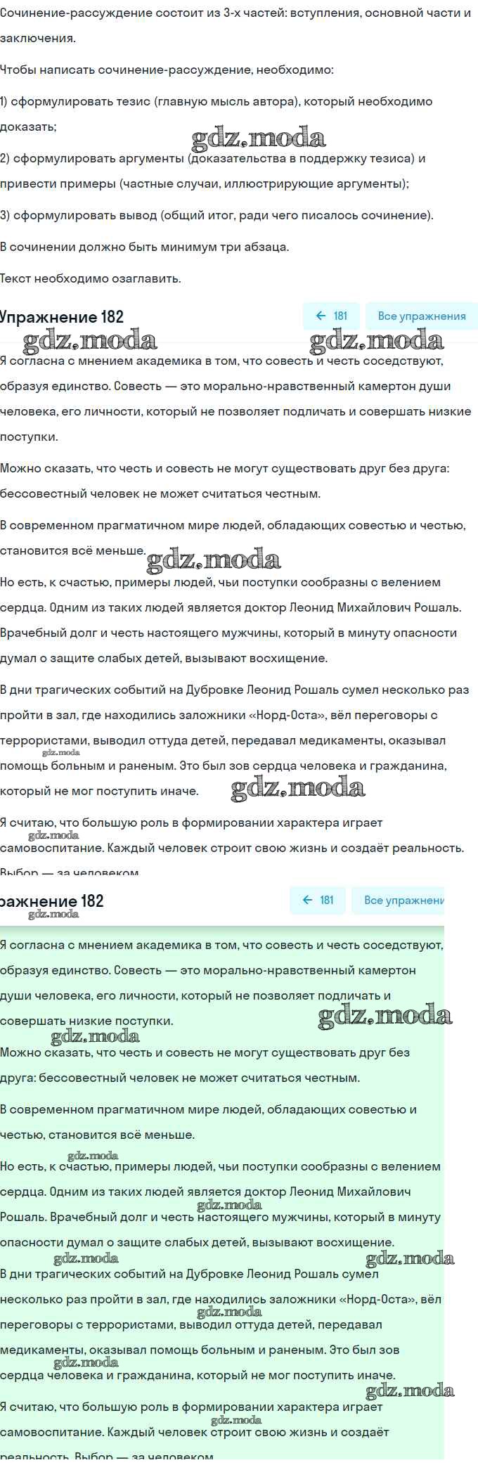 ОТВЕТ на задание № 182 Учебник по Русскому языку 9 класс Рыбченкова УМК