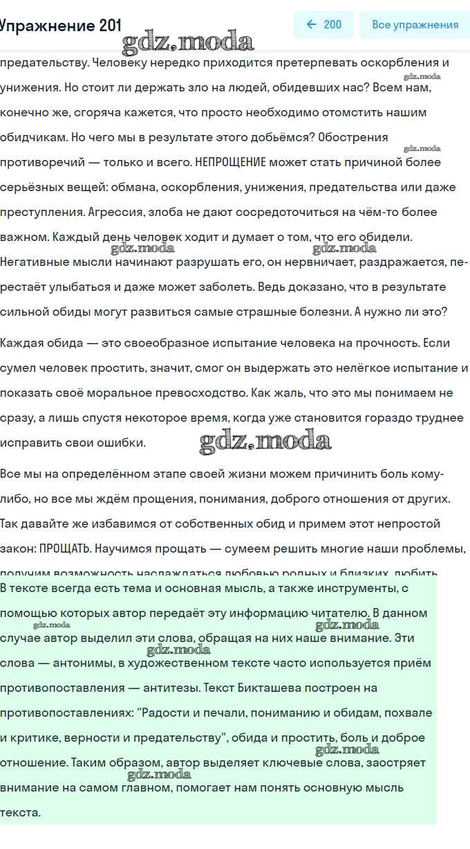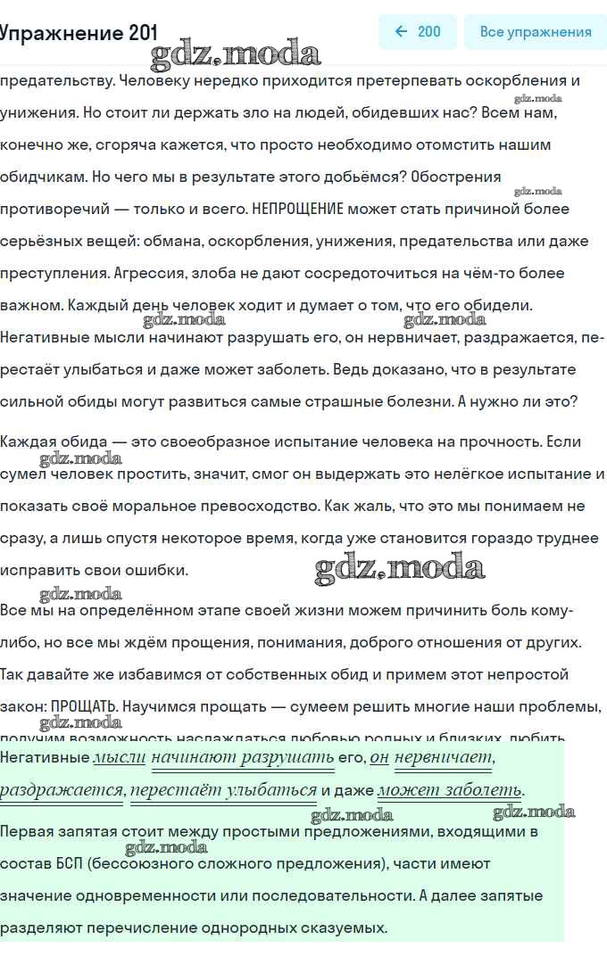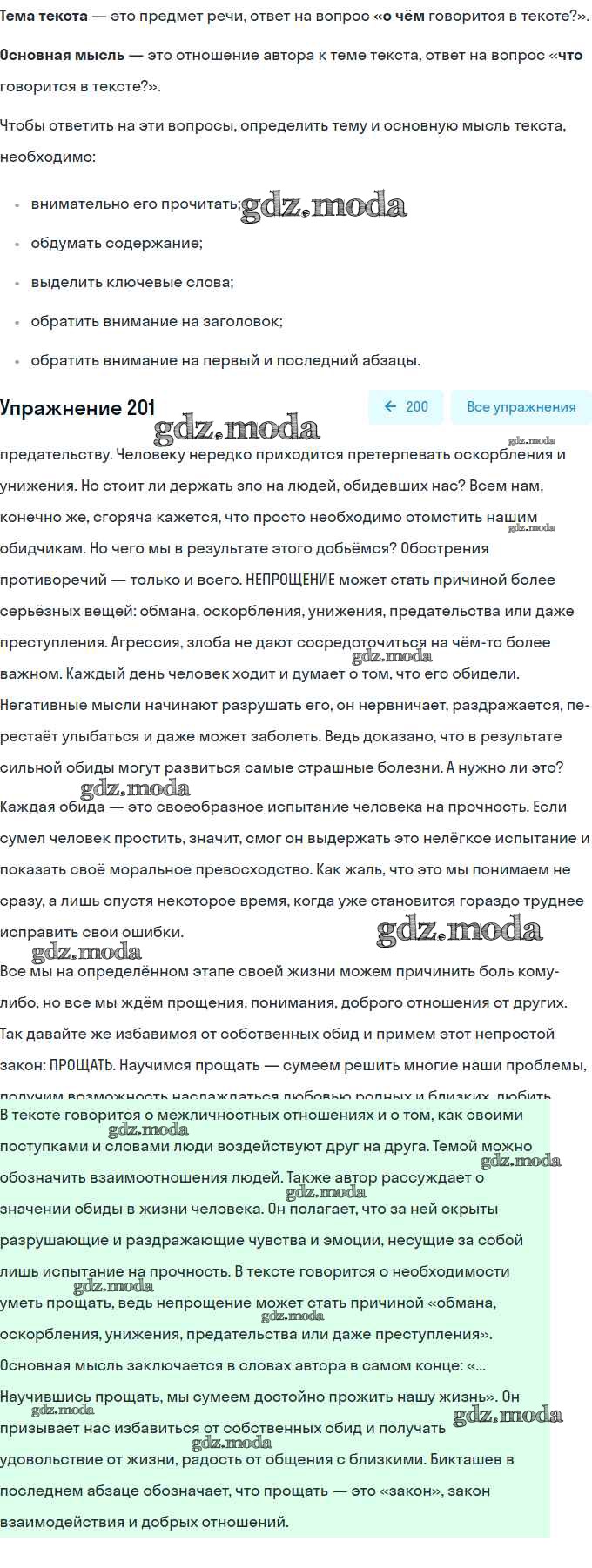 ГДЗ решение к заданию № 201 Русский язык 9 класс Рыбченкова Л.М. Просвещение 2018 ФГОС бесплатно на гдз.мода!