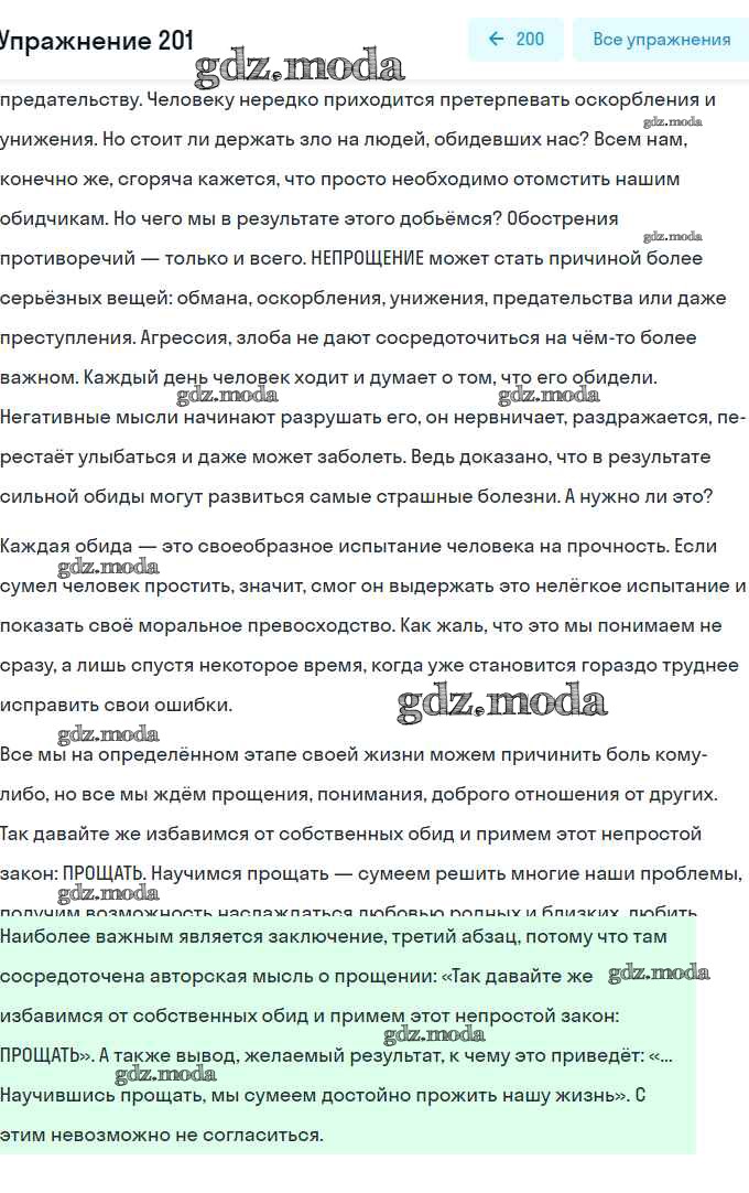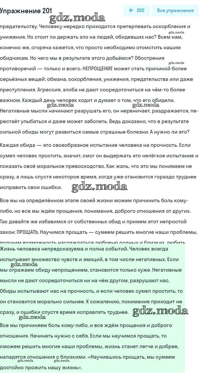 ОТВЕТ на задание № 201 Учебник по Русскому языку 9 класс Рыбченкова УМК
