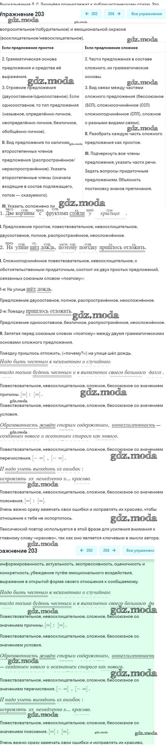 ГДЗ решение к заданию № 203 Русский язык 9 класс Рыбченкова Л.М. Просвещение 2018 ФГОС бесплатно на гдз.мода!