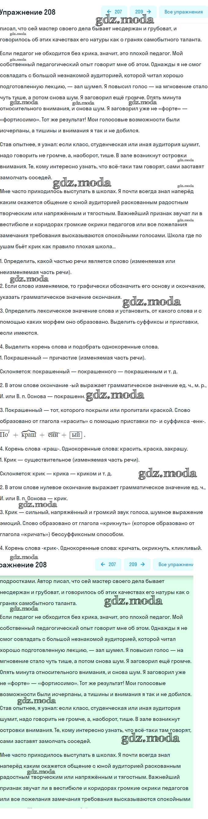 ОТВЕТ на задание № 208 Учебник по Русскому языку 9 класс Рыбченкова УМК