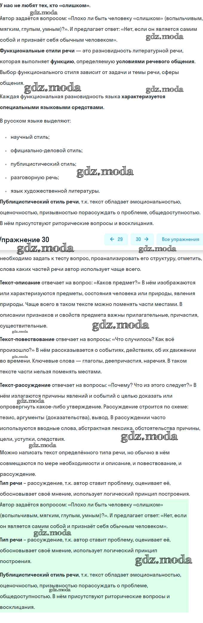 ГДЗ решение к заданию № 30 Русский язык 9 класс Рыбченкова Л.М. Просвещение 2018 ФГОС бесплатно на гдз.мода!
