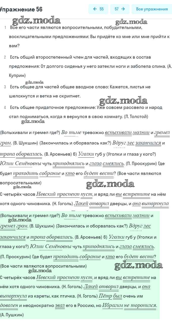 ГДЗ решение к заданию № 56 Русский язык 9 класс Рыбченкова Л.М. Просвещение 2018 ФГОС бесплатно на гдз.мода!