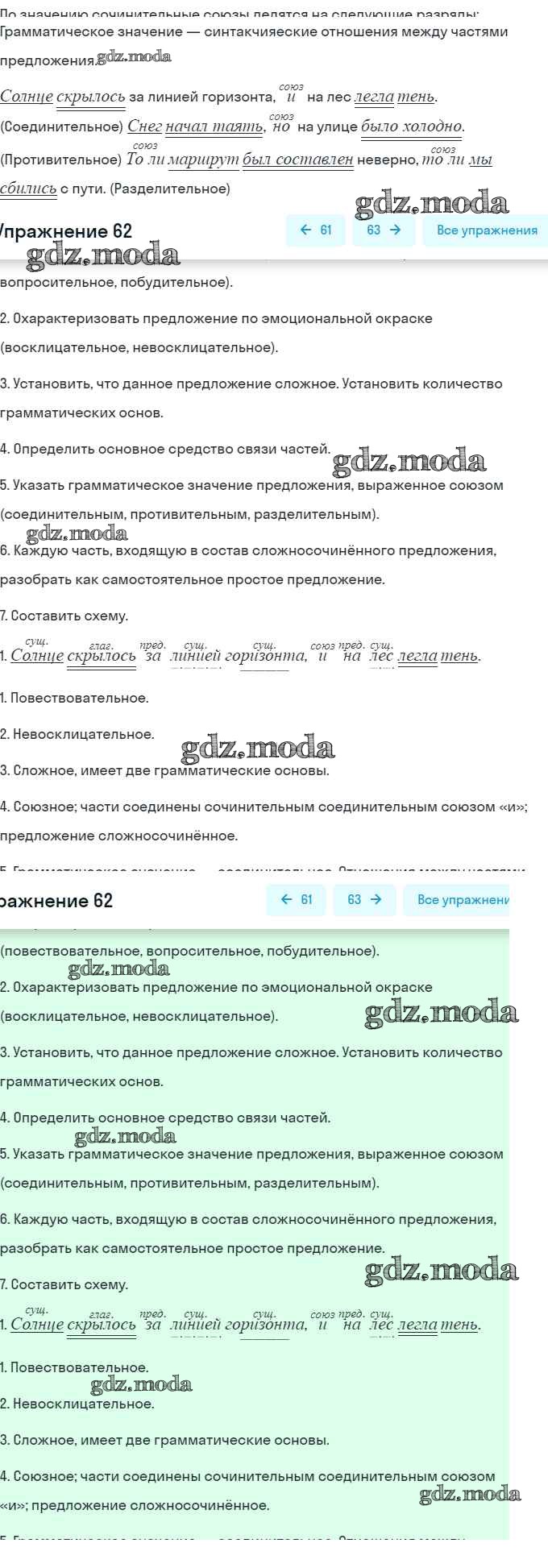 ГДЗ решение к заданию № 62 Русский язык 9 класс Рыбченкова Л.М. Просвещение 2018 ФГОС бесплатно на гдз.мода!