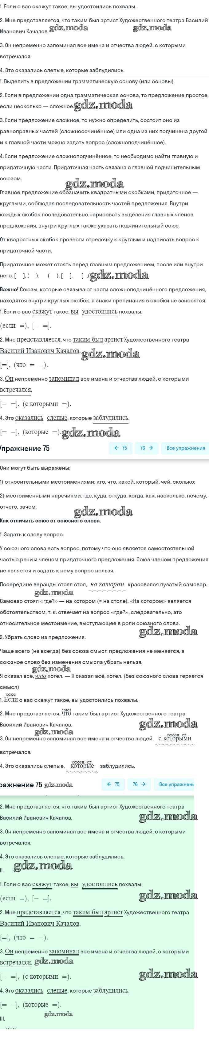 ГДЗ решение к заданию № 75 Русский язык 9 класс Рыбченкова Л.М. Просвещение 2018 ФГОС бесплатно на гдз.мода!