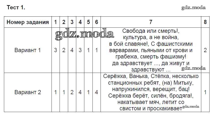 ОТВЕТ на задание № 1 Тесты по Русскому языку 9 класс Черногрудова УМК