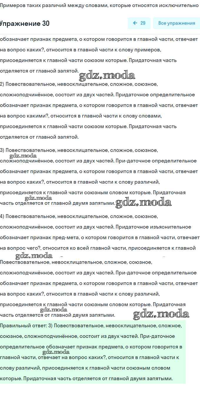 ГДЗ решение к заданию № 30 Русский язык 9 класс тесты, творческие работы, проекты Нарушевич А.Г. Просвещение 2019 бесплатно на гдз.мода!