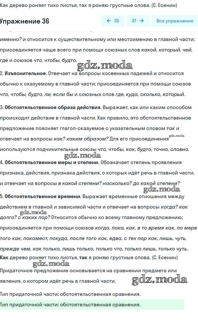 ГДЗ решение к заданию № 36 Русский язык 9 класс тесты, творческие работы, проекты Нарушевич А.Г. Просвещение 2019 бесплатно на гдз.мода!