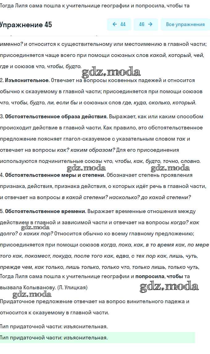 ГДЗ решение к заданию № 45 Русский язык 9 класс тесты, творческие работы, проекты Нарушевич А.Г. Просвещение 2019 бесплатно на гдз.мода!