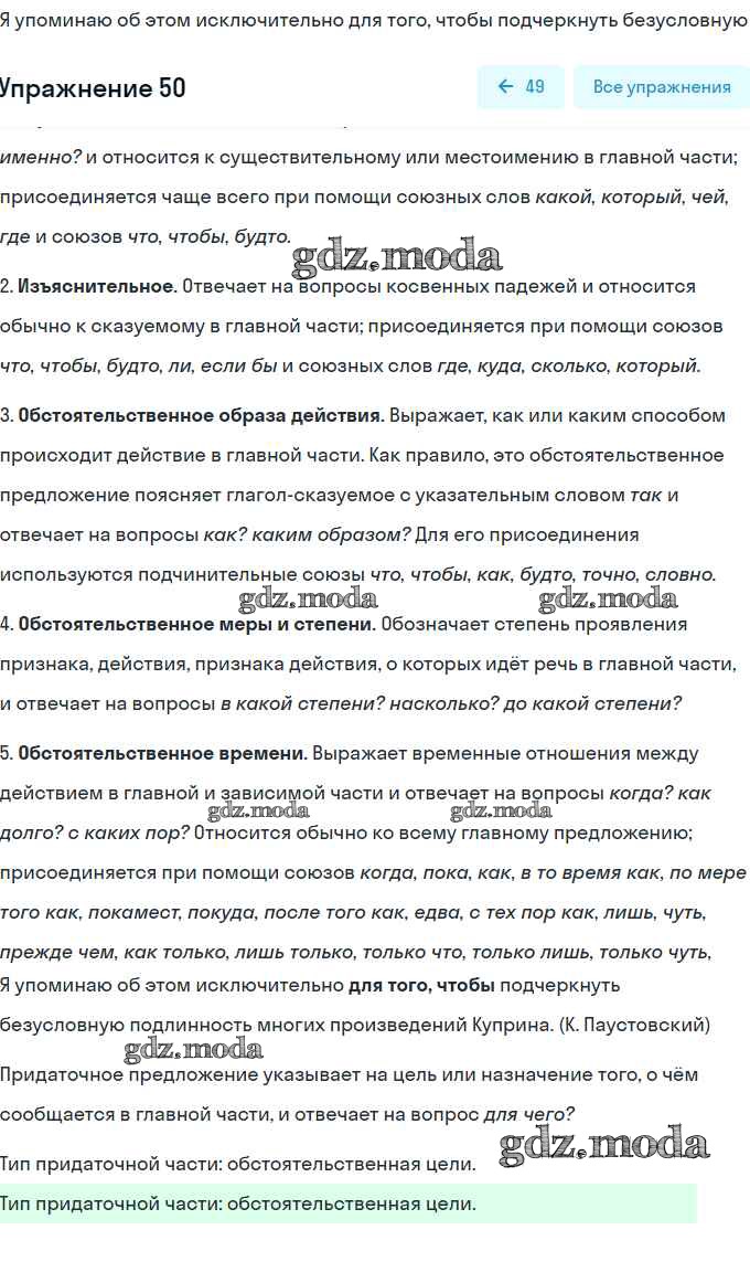 ГДЗ решение к заданию № 50 Русский язык 9 класс тесты, творческие работы, проекты Нарушевич А.Г. Просвещение 2019 бесплатно на гдз.мода!