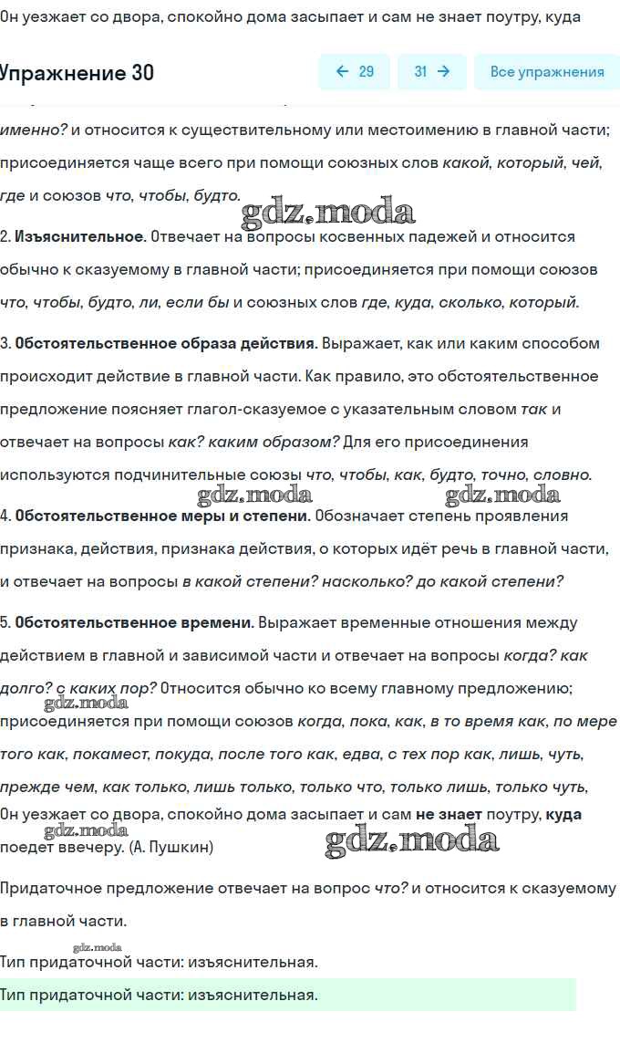 ГДЗ решение к заданию № 30 Русский язык 9 класс тесты, творческие работы, проекты Нарушевич А.Г. Просвещение 2019 бесплатно на гдз.мода!
