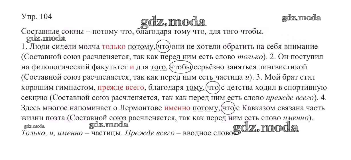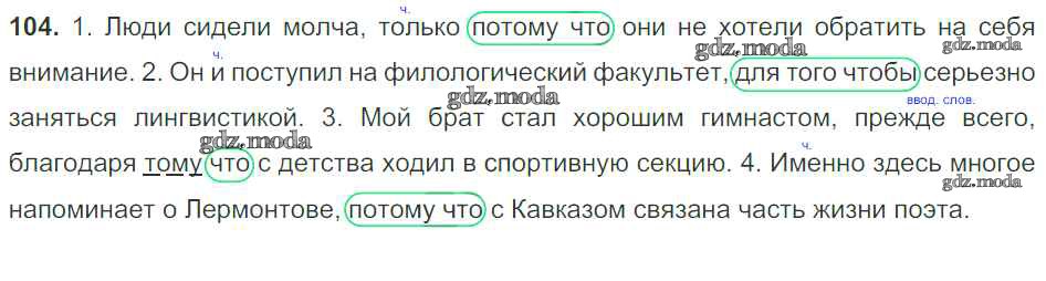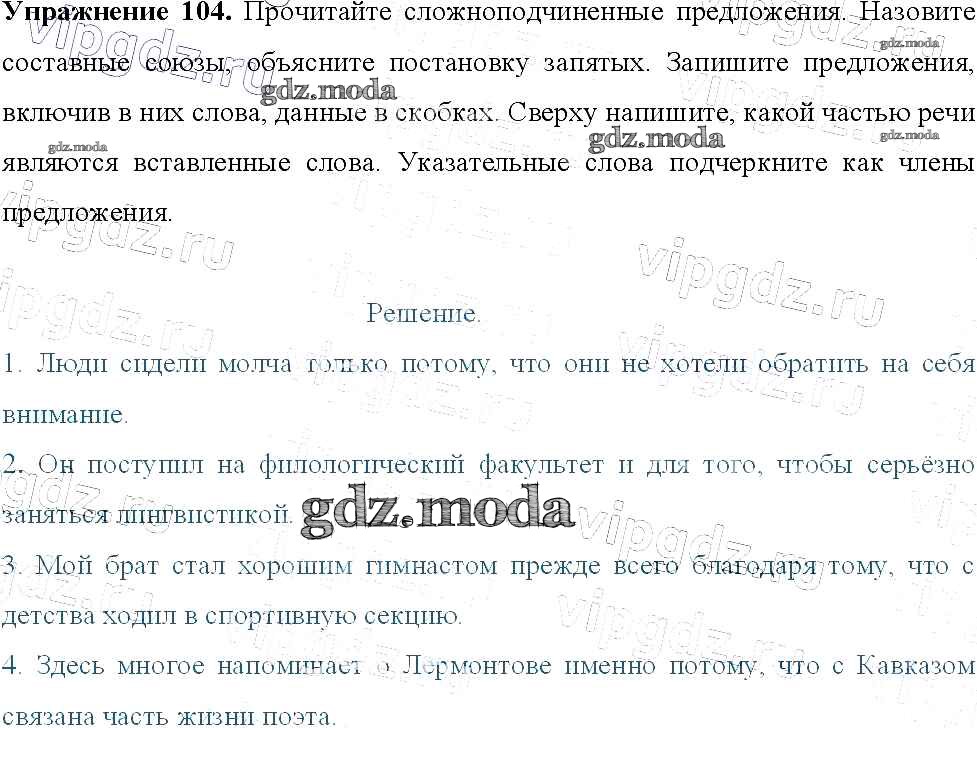 ОТВЕТ на задание № 104 Учебник по Русскому языку 9 класс Тростенцова