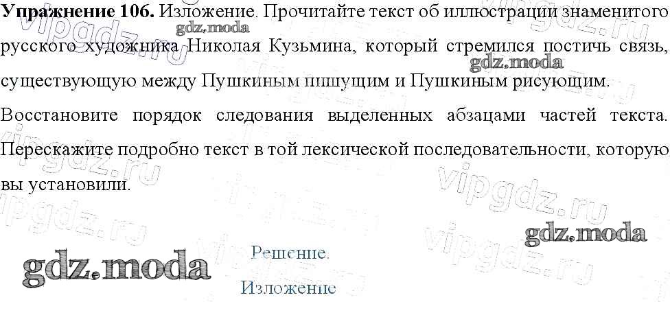 ОТВЕТ на задание № 106 Учебник по Русскому языку 9 класс Тростенцова