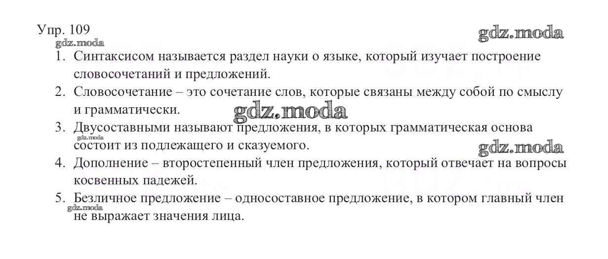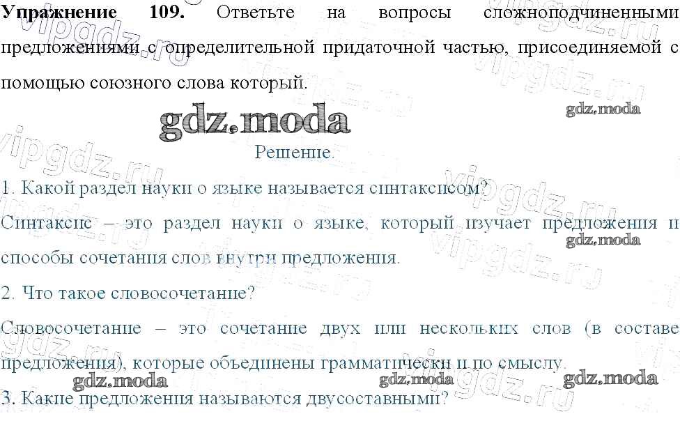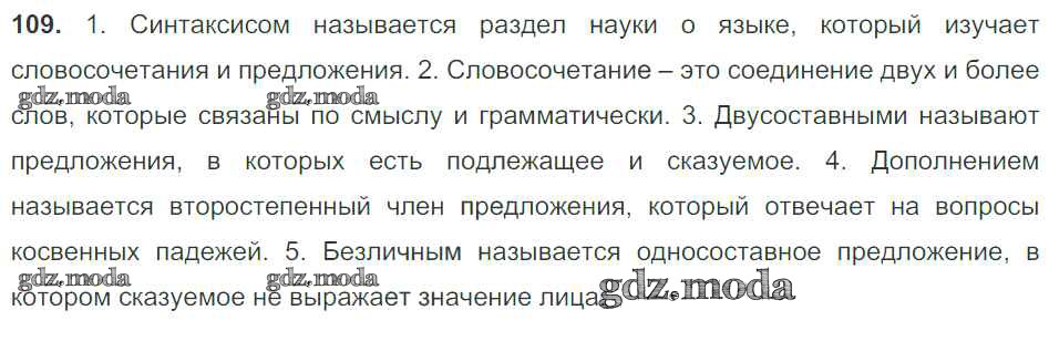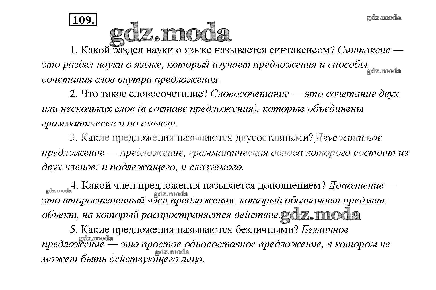 ОТВЕТ на задание № 109 Учебник по Русскому языку 9 класс Тростенцова