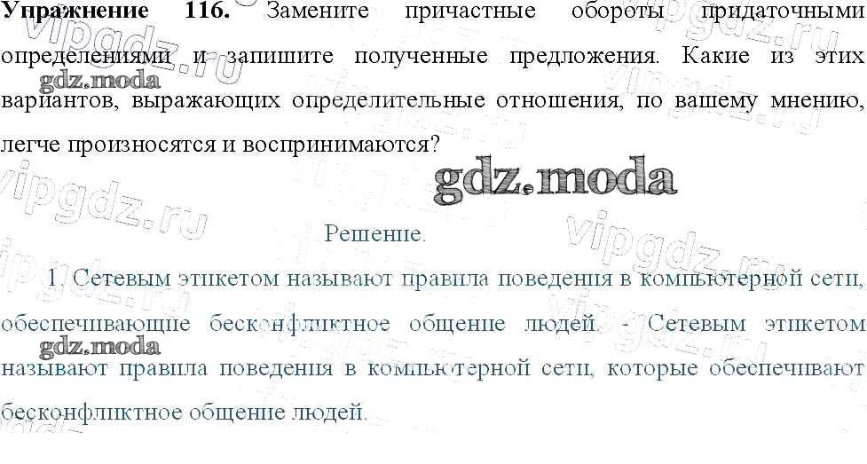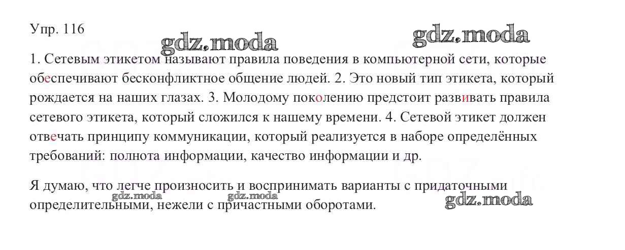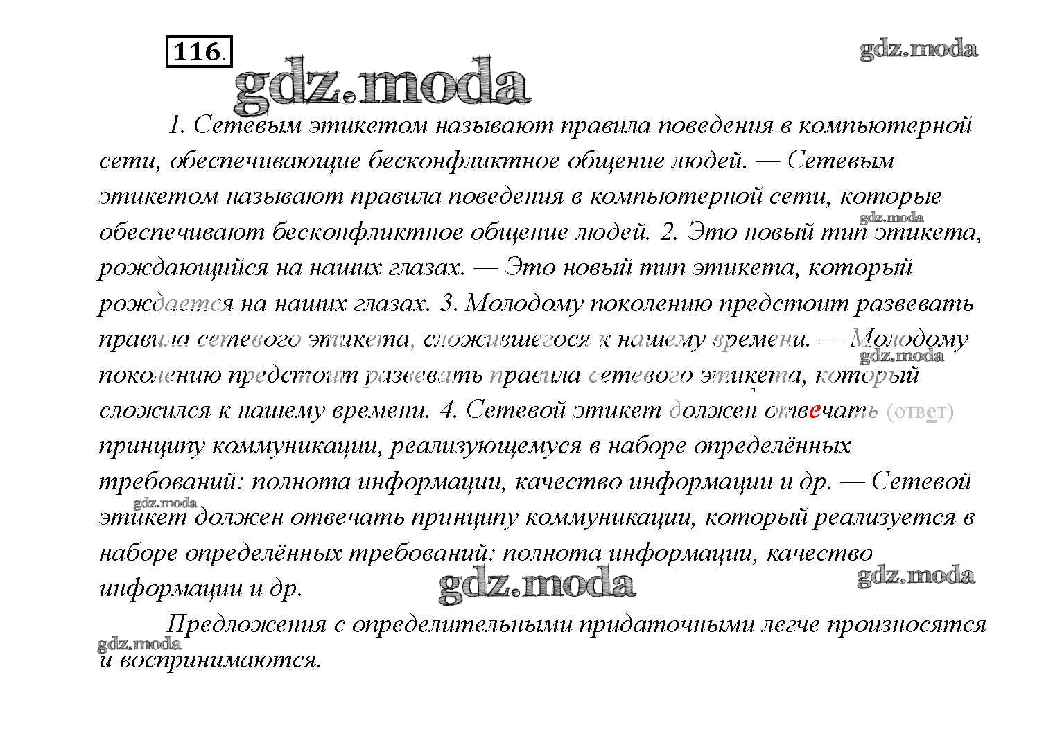 ОТВЕТ на задание № 116 Учебник по Русскому языку 9 класс Тростенцова