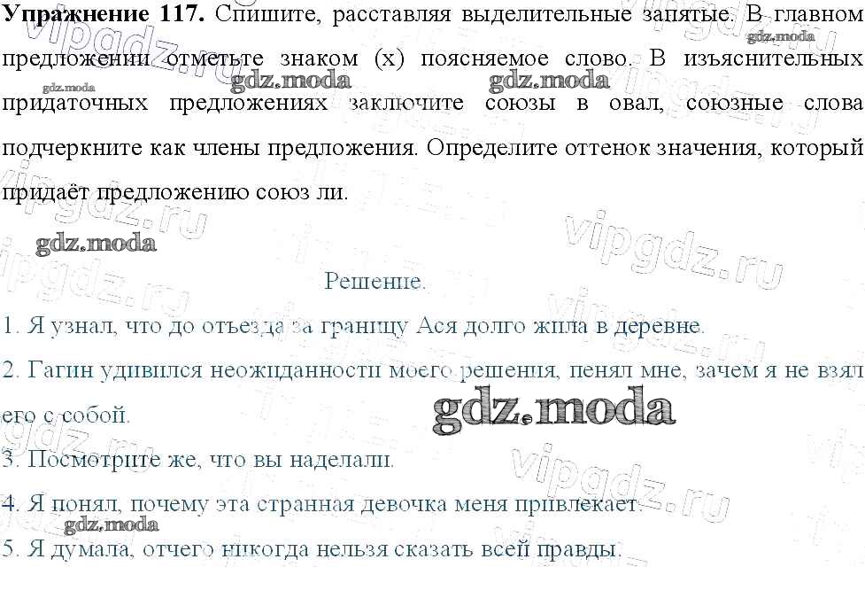 ОТВЕТ на задание № 117 Учебник по Русскому языку 9 класс Тростенцова