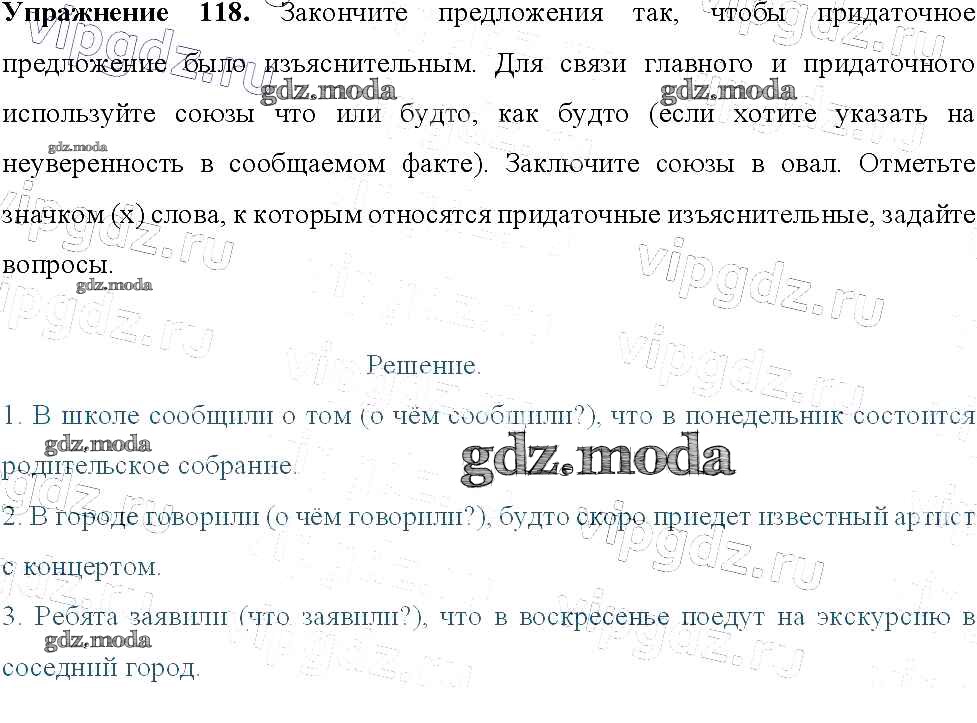 ОТВЕТ на задание № 118 Учебник по Русскому языку 9 класс Тростенцова