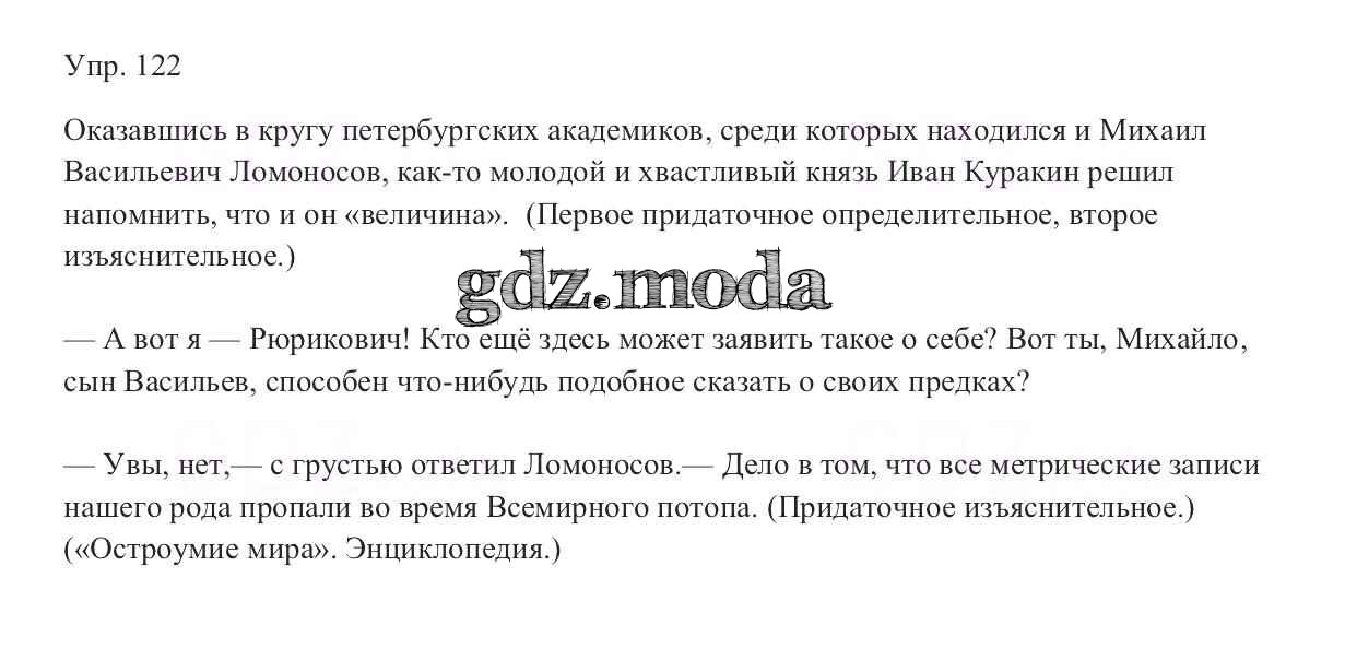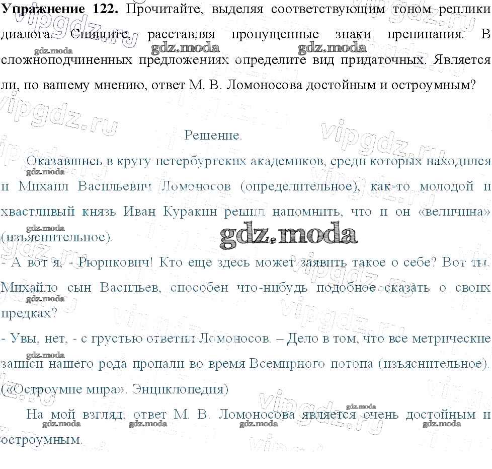 ОТВЕТ на задание № 122 Учебник по Русскому языку 9 класс Тростенцова