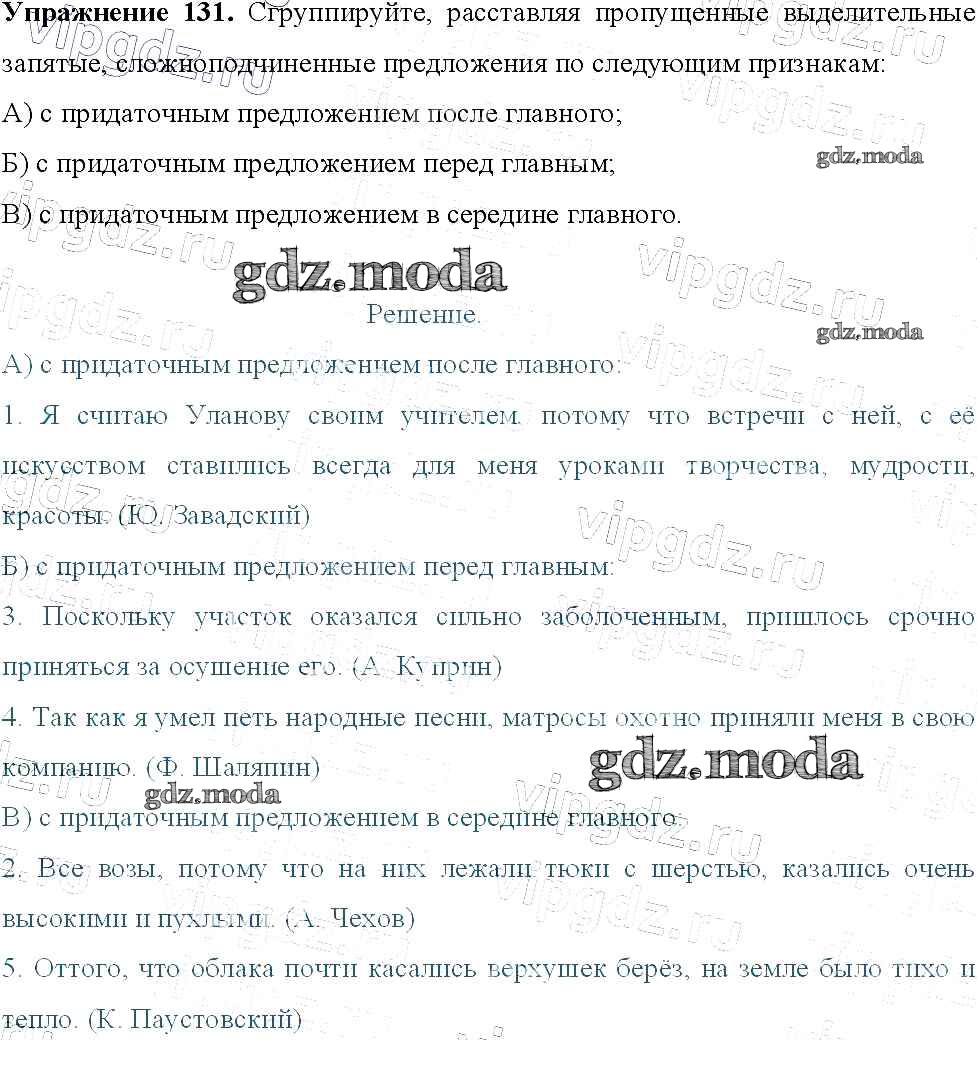 ОТВЕТ на задание № 131 Учебник по Русскому языку 9 класс Тростенцова