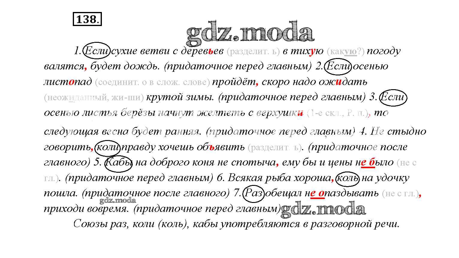 ОТВЕТ на задание № 138 Учебник по Русскому языку 9 класс Тростенцова