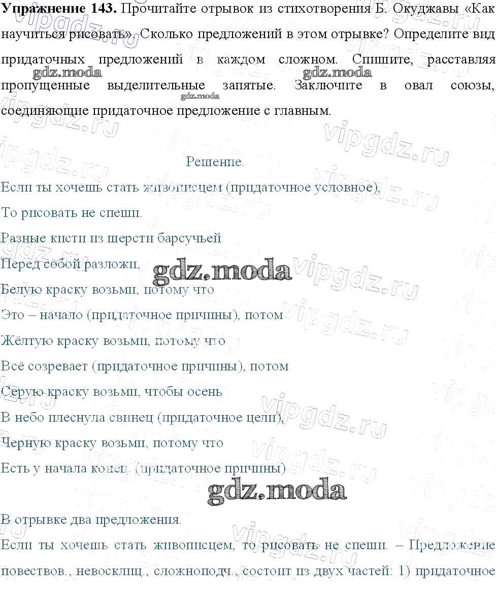 ОТВЕТ на задание № 143 Учебник по Русскому языку 9 класс Тростенцова