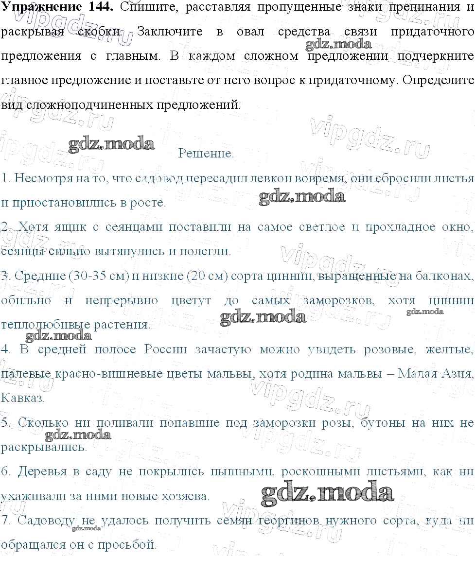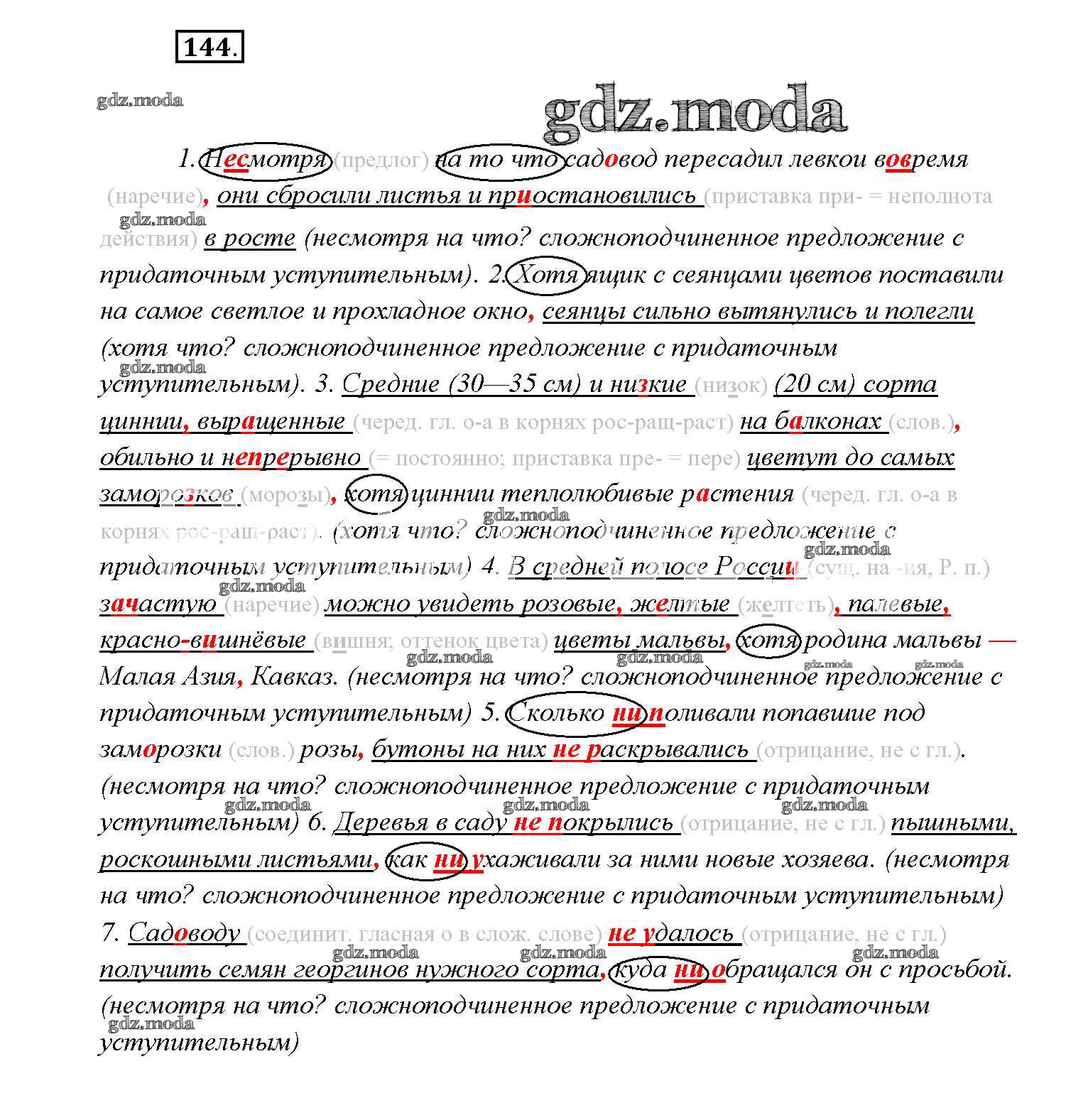 ОТВЕТ на задание № 144 Учебник по Русскому языку 9 класс Тростенцова