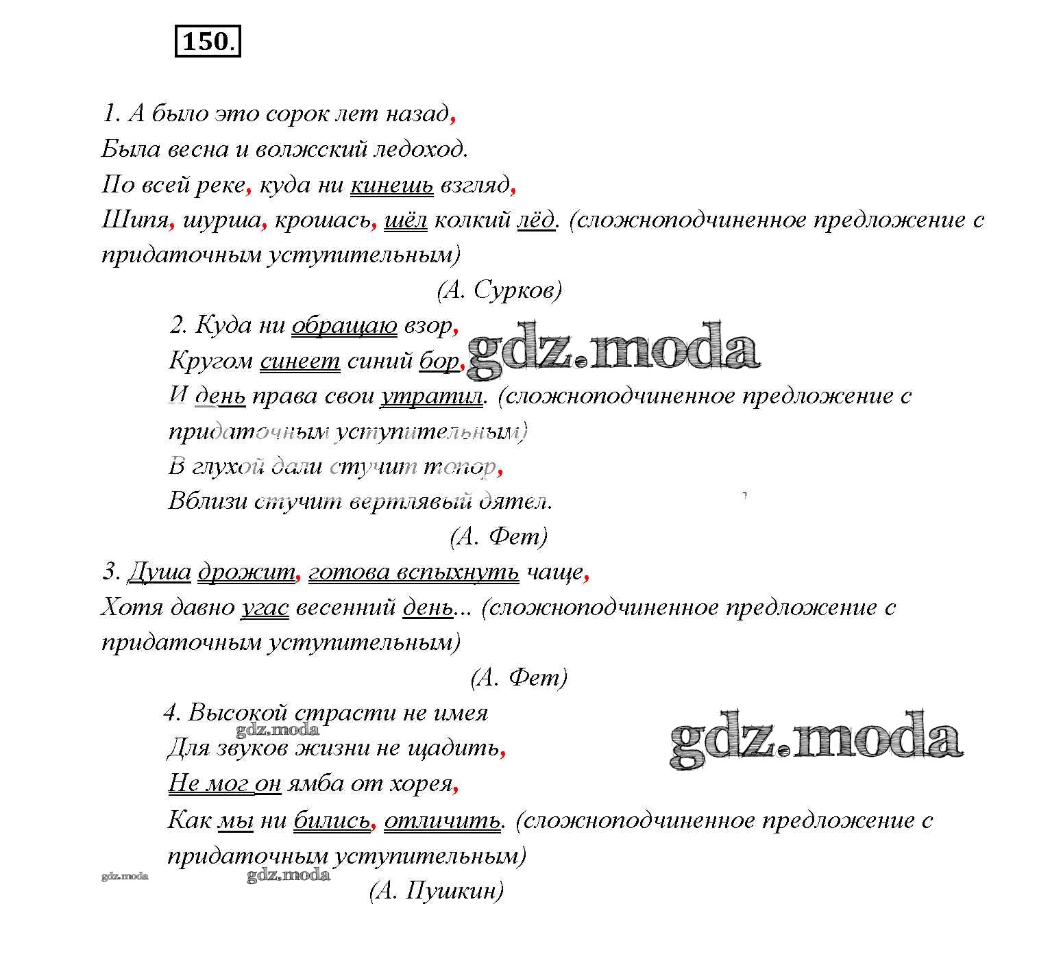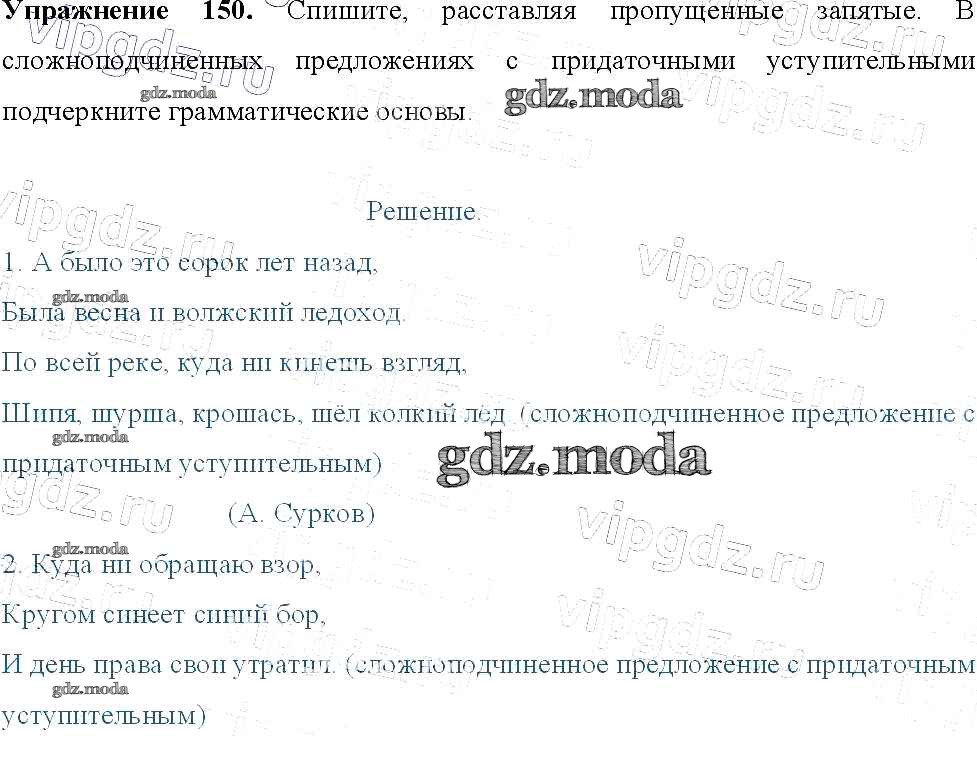 ОТВЕТ на задание № 150 Учебник по Русскому языку 9 класс Тростенцова
