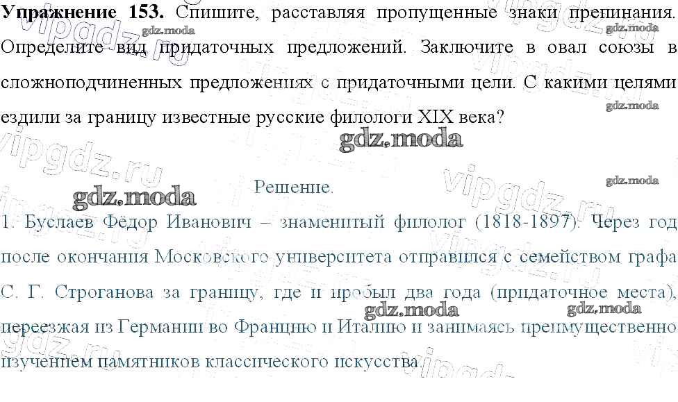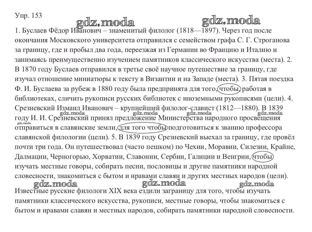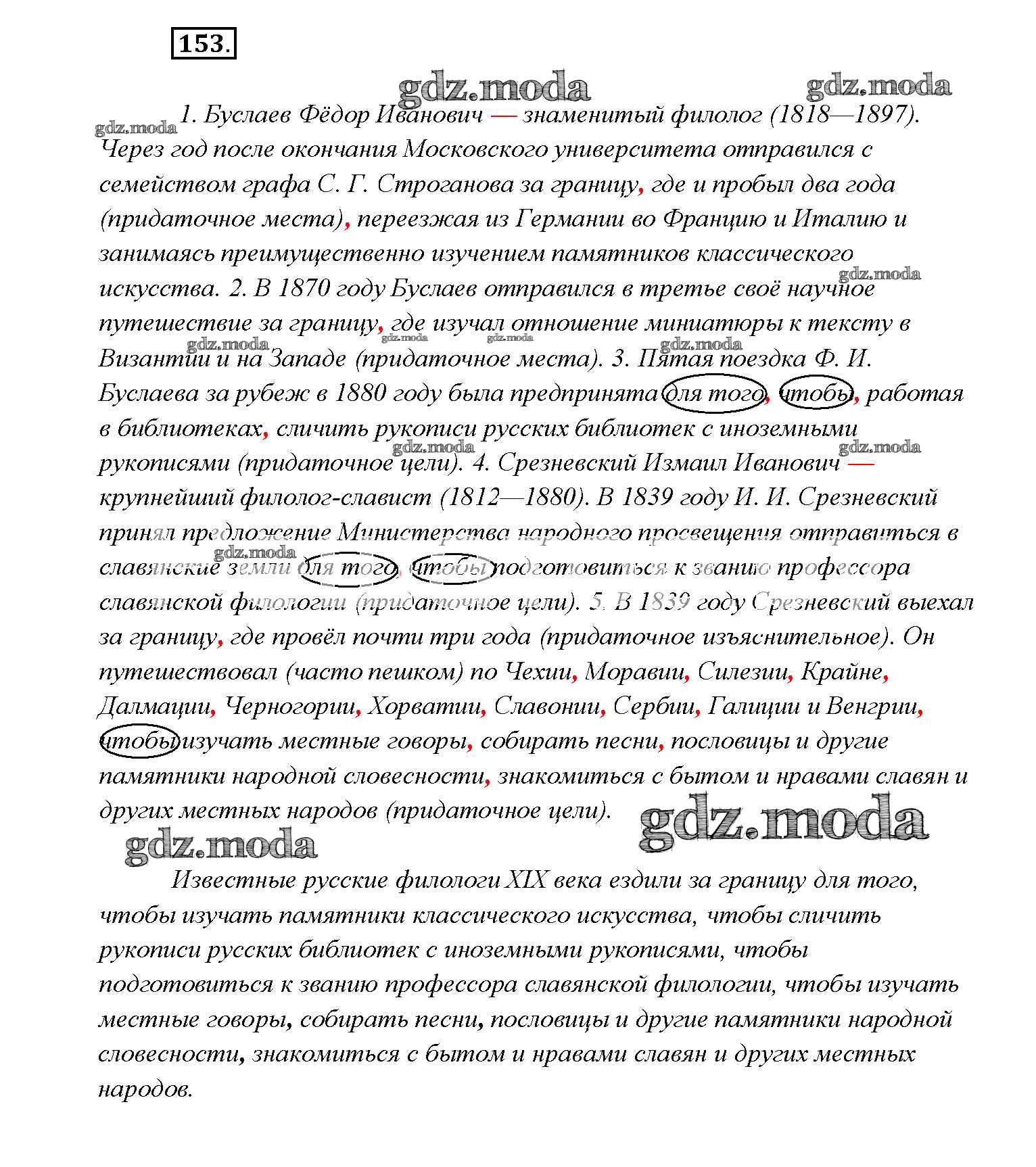 ОТВЕТ на задание № 153 Учебник по Русскому языку 9 класс Тростенцова
