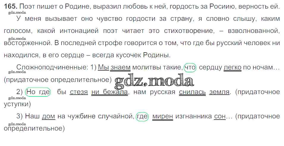 ОТВЕТ на задание № 165 Учебник по Русскому языку 9 класс Тростенцова