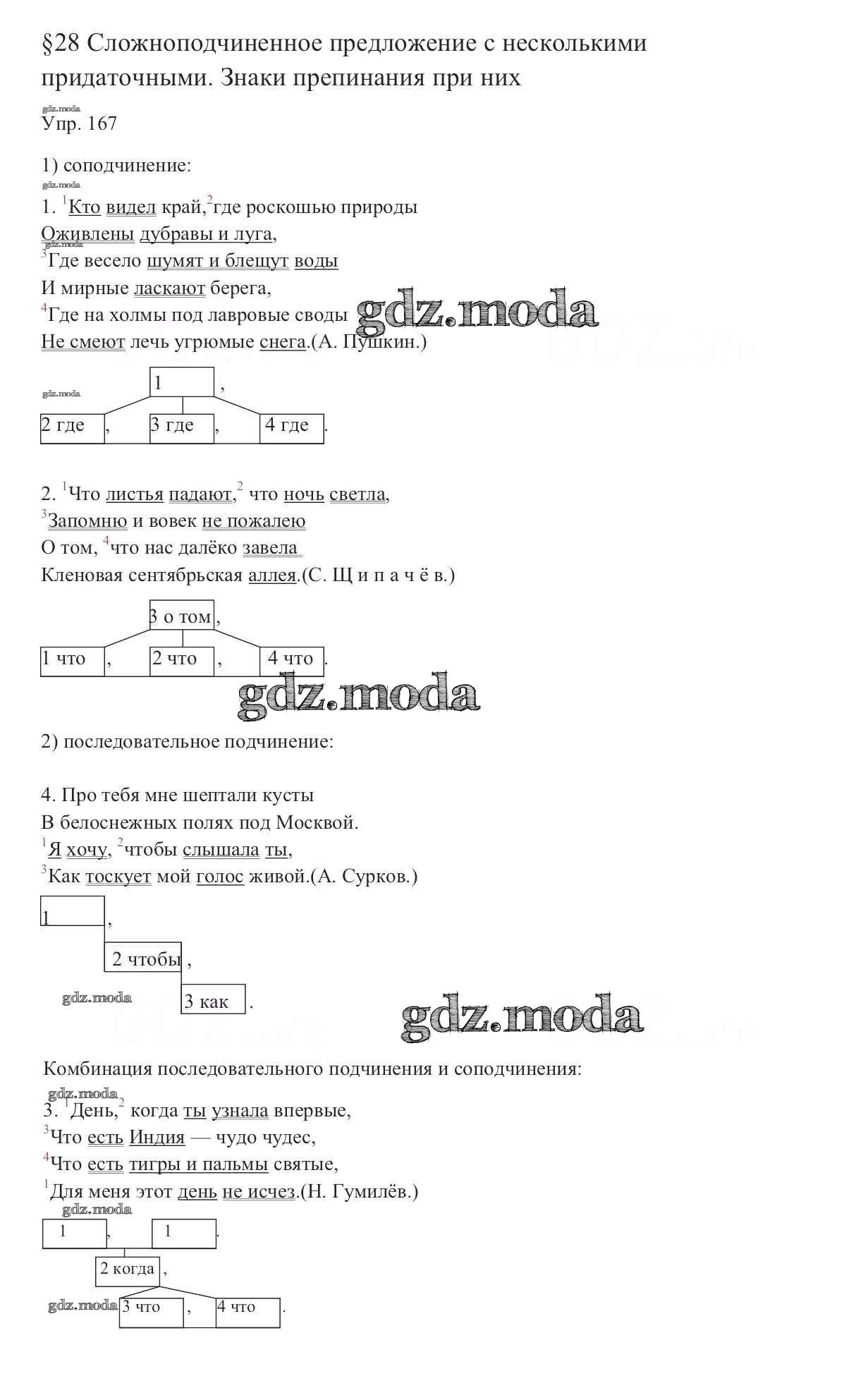 ОТВЕТ на задание № 167 Учебник по Русскому языку 9 класс Тростенцова