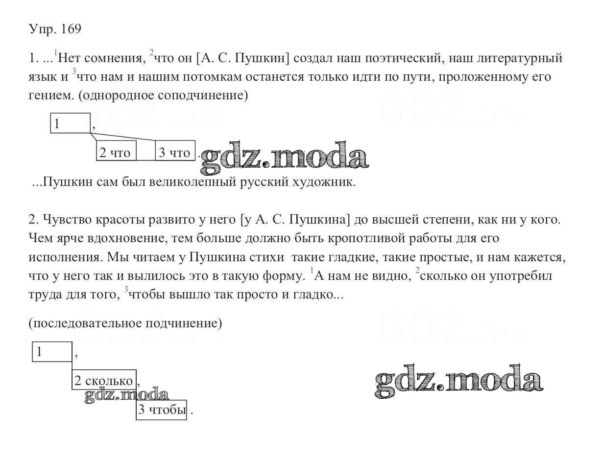 ОТВЕТ на задание № 169 Учебник по Русскому языку 9 класс Тростенцова