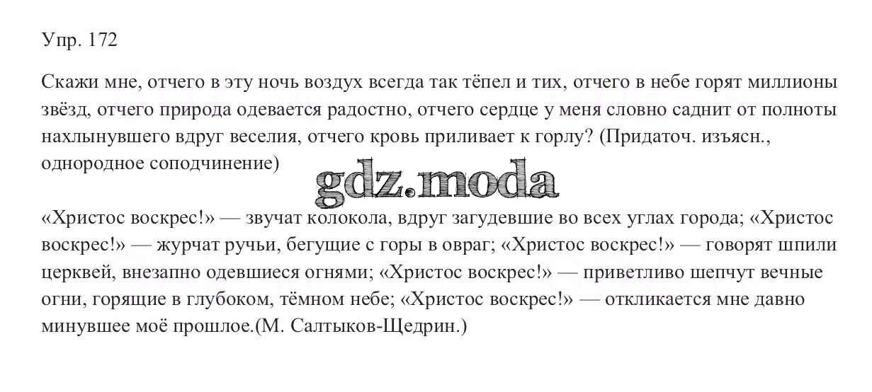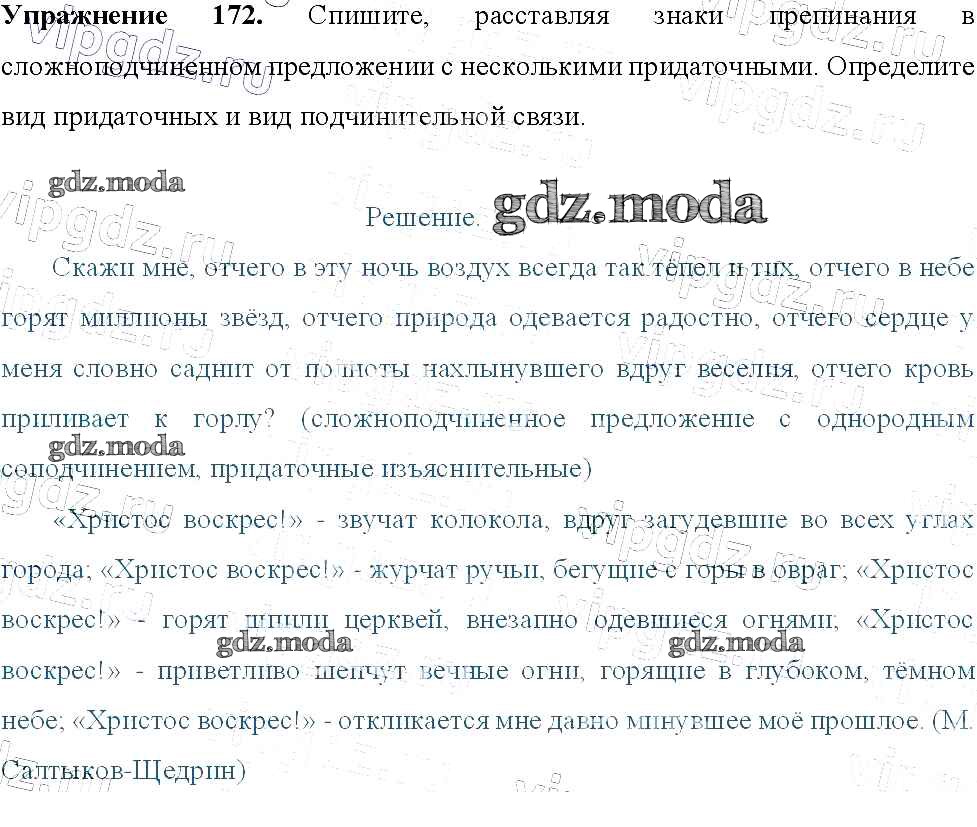 ОТВЕТ на задание № 172 Учебник по Русскому языку 9 класс Тростенцова