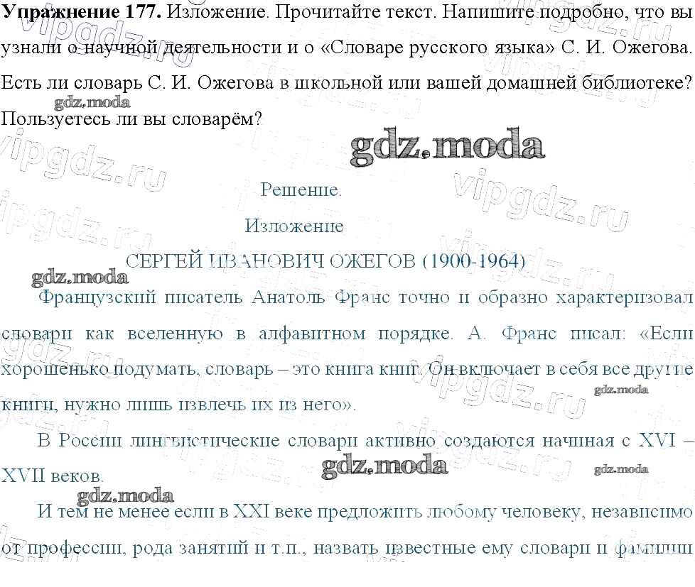 ОТВЕТ на задание № 177 Учебник по Русскому языку 9 класс Тростенцова