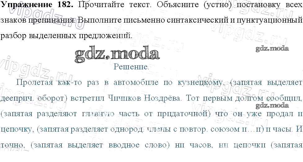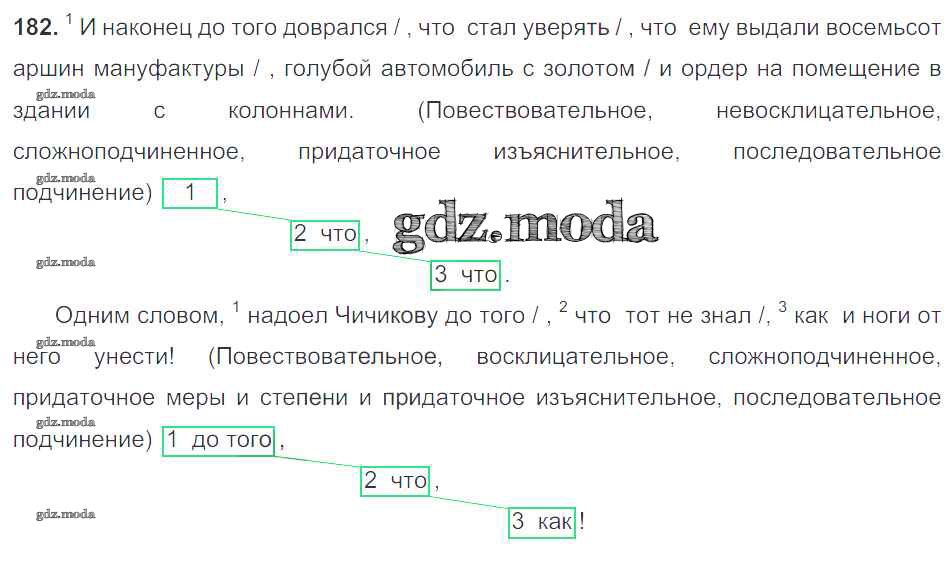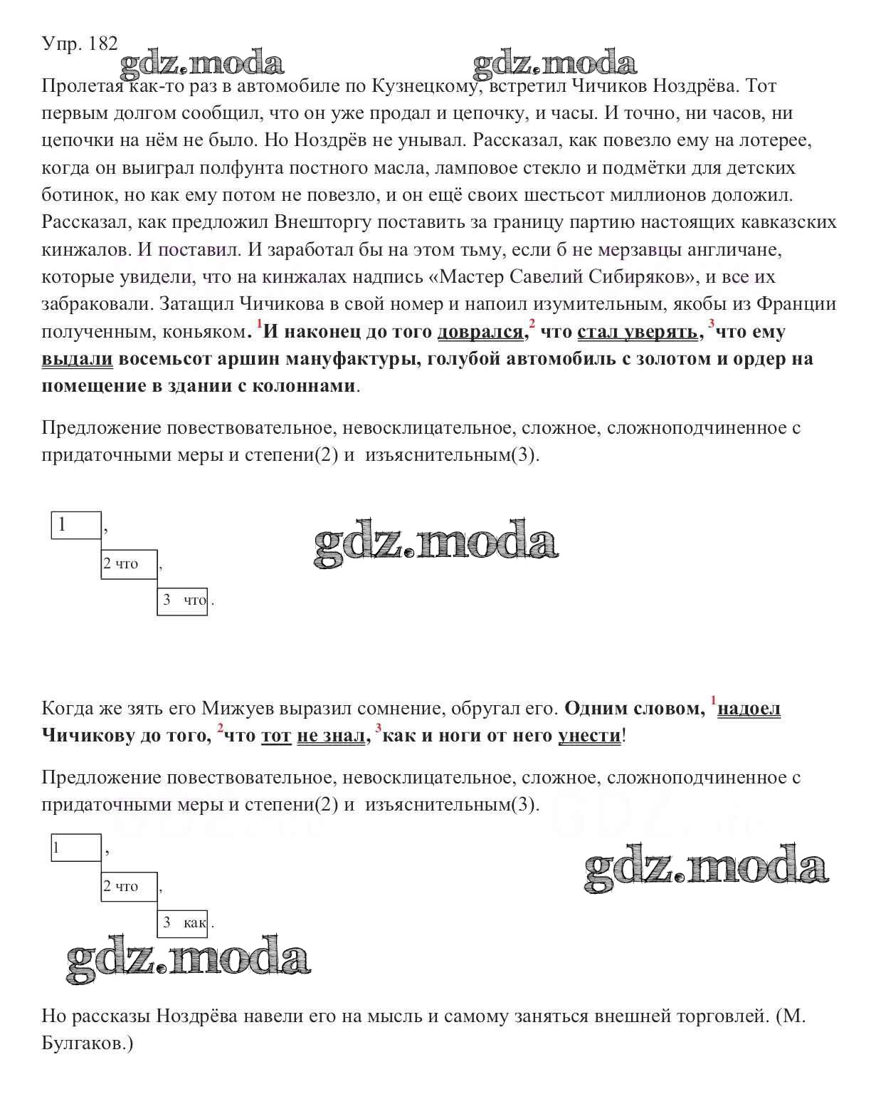 ОТВЕТ на задание № 182 Учебник по Русскому языку 9 класс Тростенцова