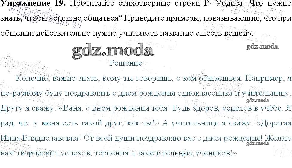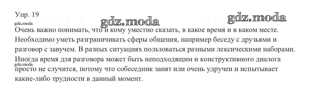 ГДЗ решение к заданию № 19 Русский язык 9 класс Тростенцова Л.А. Просвещение 2014 ФГОС бесплатно на гдз.мода!