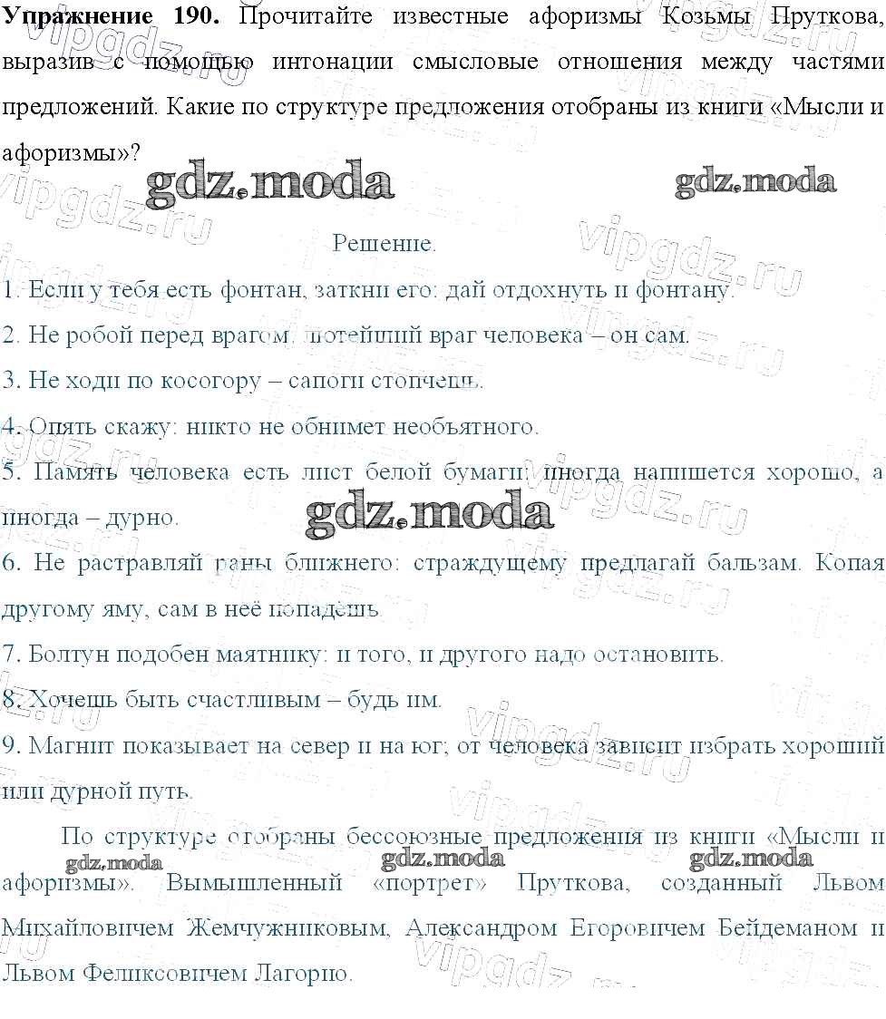 ОТВЕТ на задание № 190 Учебник по Русскому языку 9 класс Тростенцова