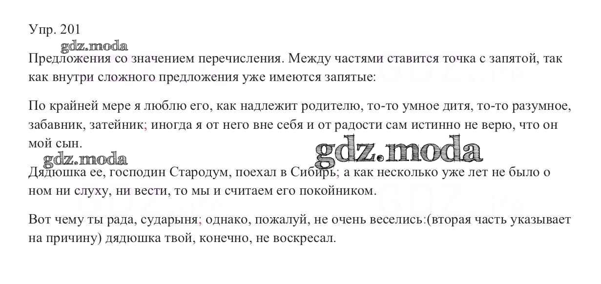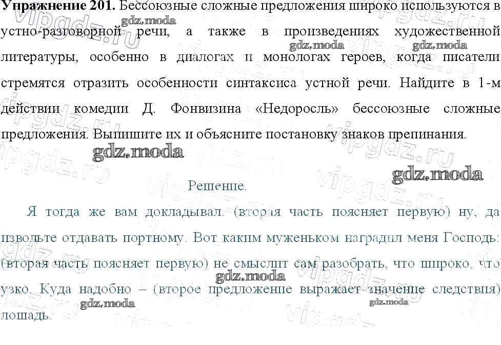ОТВЕТ на задание № 201 Учебник по Русскому языку 9 класс Тростенцова